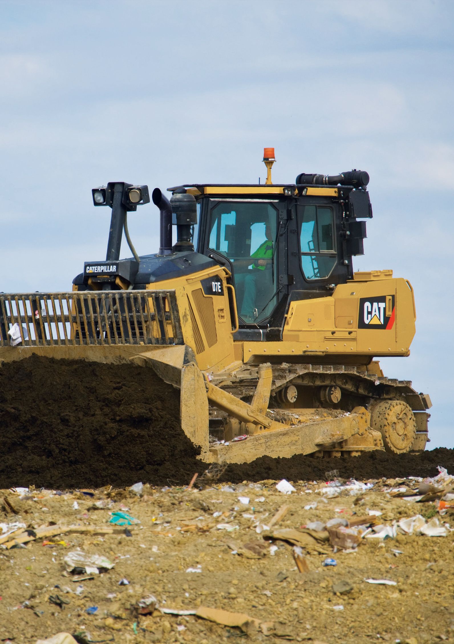 Landfills are a crucial part in improving the cleanliness of our air, water, soil … even the quality of our lives. Putting an innovative, conservation-minded track-type tractor to work on the landfill just makes sense. With its unique diesel-electric drive technology, it puts out fewer emissions and uses less fuel than conventional tractors. Like all Cat track-type tractors working in landfill applications, the D7E is a heavy-duty machine with waste handling guarding to safeguard uptime and support your business. It’s a powerful and highly maneuverable machine for dozing and compacting waste, and at the end of the day, will seamlessly convert to doing the fine grading required to place just the right depth of cover material.