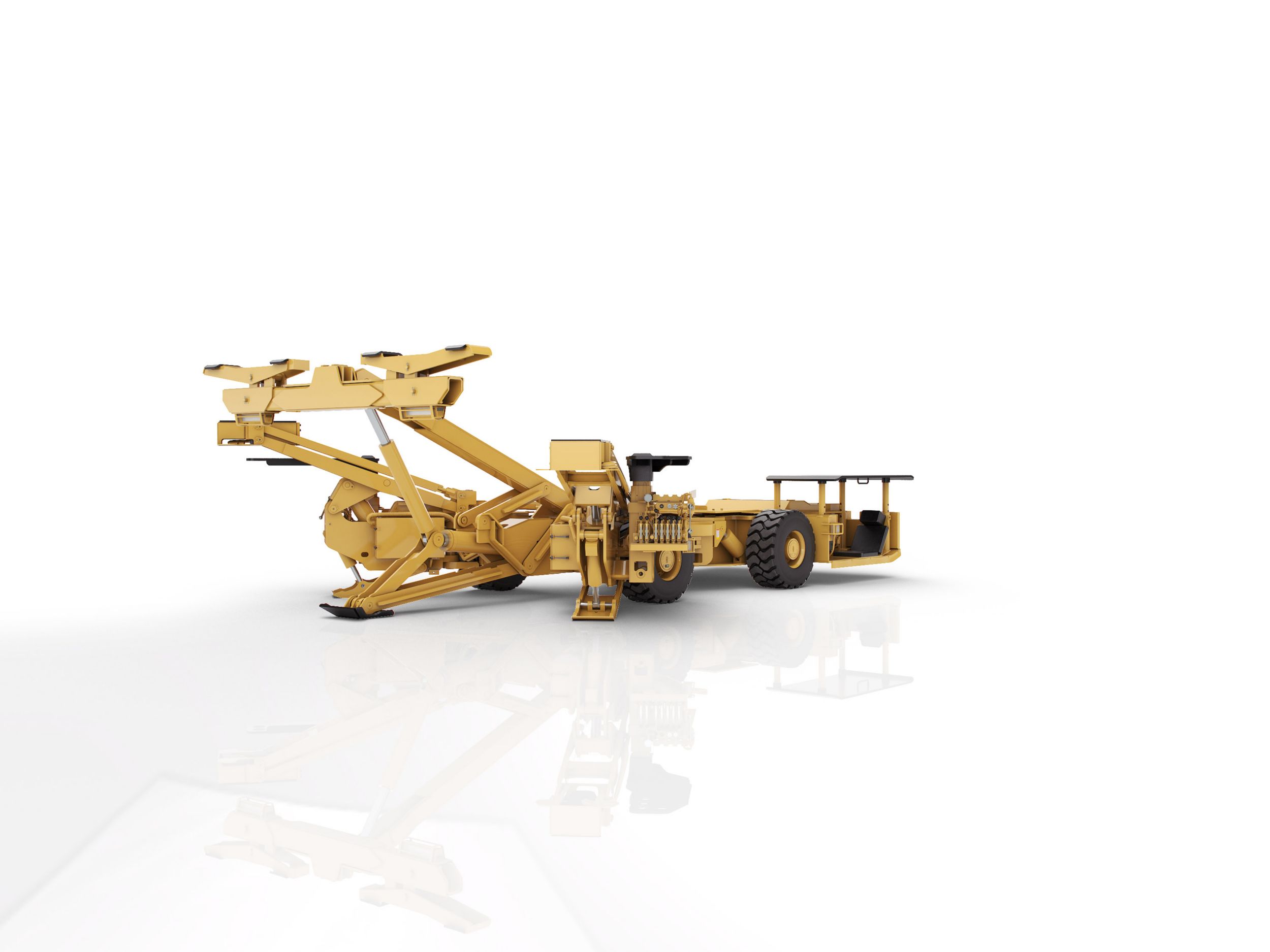 Caterpillar combines technology with keen customer insights to deliver a new level of innovative, safe and productive roof bolters. Key Features: • Skid or proprietary articulated steering (depending on model) • Horizontal and vertical articulation (on dual-boom models) • Floor and roof avoidance compensation (on dual-boom models) • Individual planetary wheel drives-no sprockets or chains • User-friendly operator zones • Single AC primary drive motor • Single hydraulic oil pump • Easy access components • Quick free-steering towing conversion • Streamlined, practical space-planned tram station
