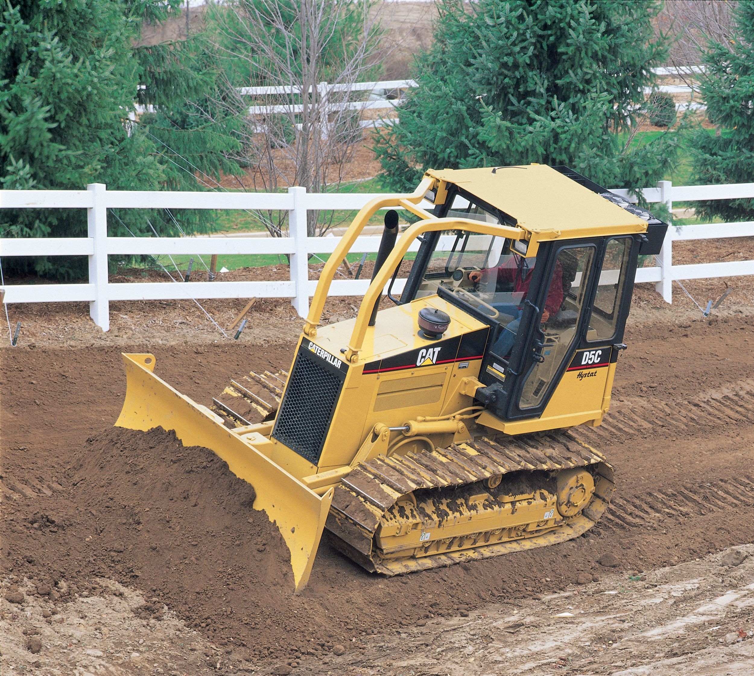 A single lever joystick controls speed, direction and steering on Cat® D5C Series III Track-type Tractors. Full powerturn capability is made possible by maintaining power to both tracks at any ground speed or turning radius.